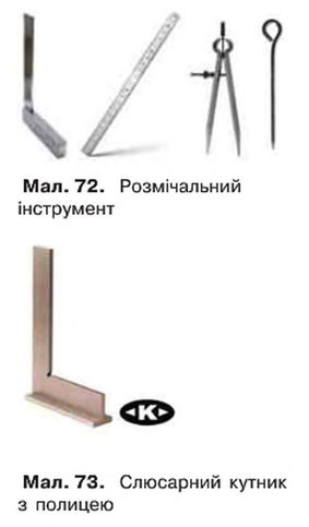 Розмічанням називається нанесення відповідно до рисунка або кресленика ліній на заготовці розмічальним інструментом (мал.72 та мал. 73), які визначають місця її обробки.